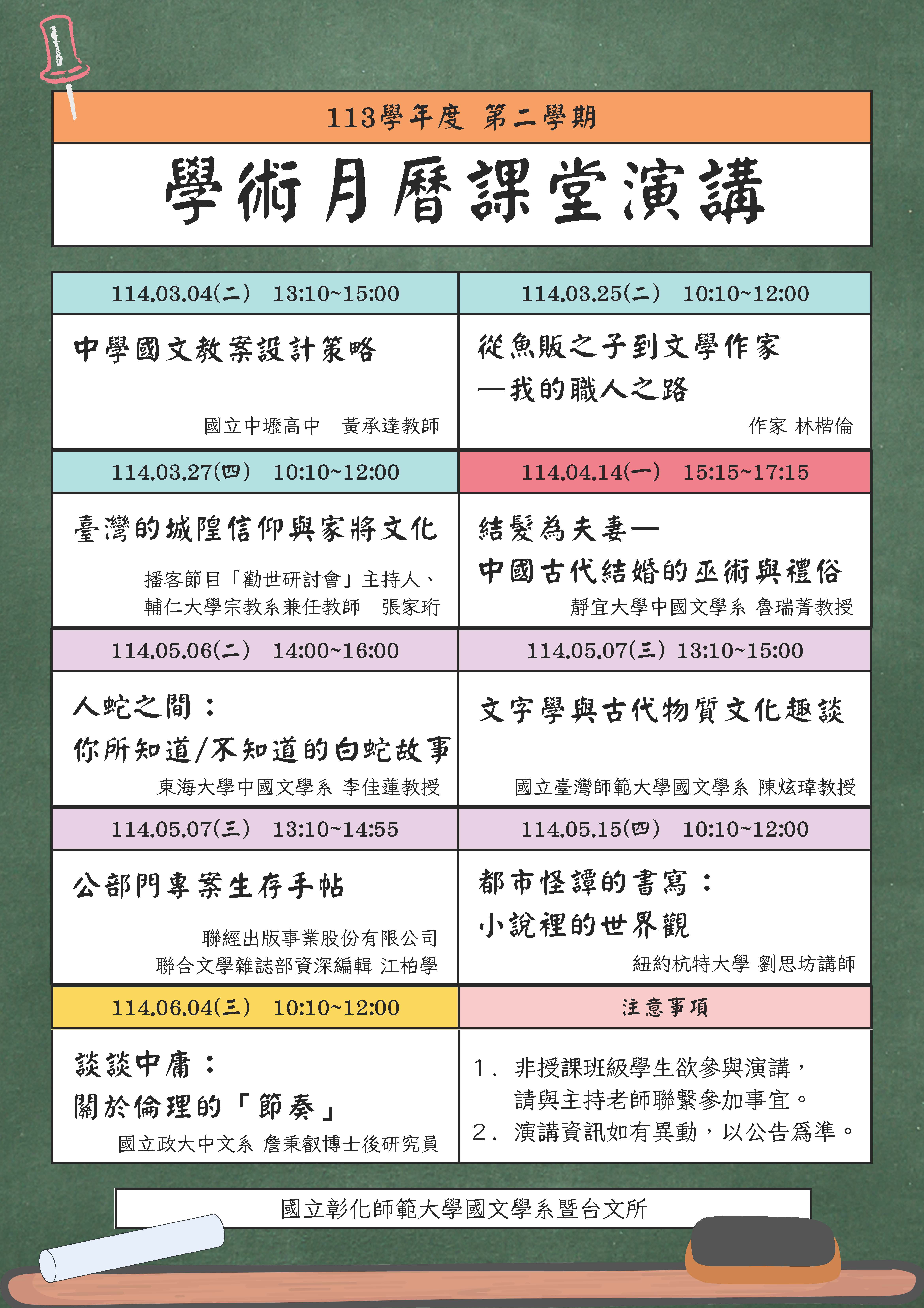 註:非授課班級學生若欲參與演講,請與授課教師(主持老師)聯繫參加事宜。